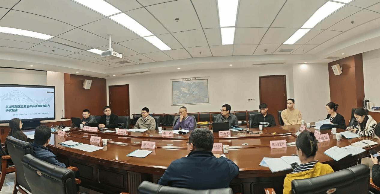 11月17日上午,在光谷公共服务中心1号楼3003会议室召开东湖高新区经营主体高质量发展项目汇报评审会。武汉大学黄敏学教授、崔楠教授,长城战略咨询卫占魁研究员,东湖高新区发改局(统计局)、企服局、市场监管局、光电园、服务业园等相关职能部门代表受邀参会,365英国上市集团肖邦明副教授及大数据管理专业本科生做项目汇报发言。会议由东湖高新区政务服务和大数据管理局副局长王朝晖主持活动。