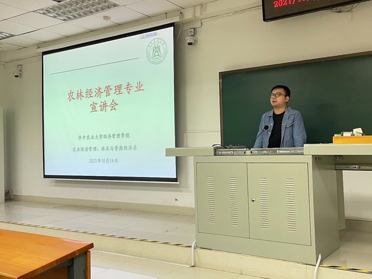 10月14日晚上7点,经管院农业经济管理系在三教C205教室举办了2020级专业分流宣讲会。经管院副院长罗小锋,农经系主任熊涛,以及闵师、杨志海、何可、郝晶辉、唐川等青年教师出席了本次会议。