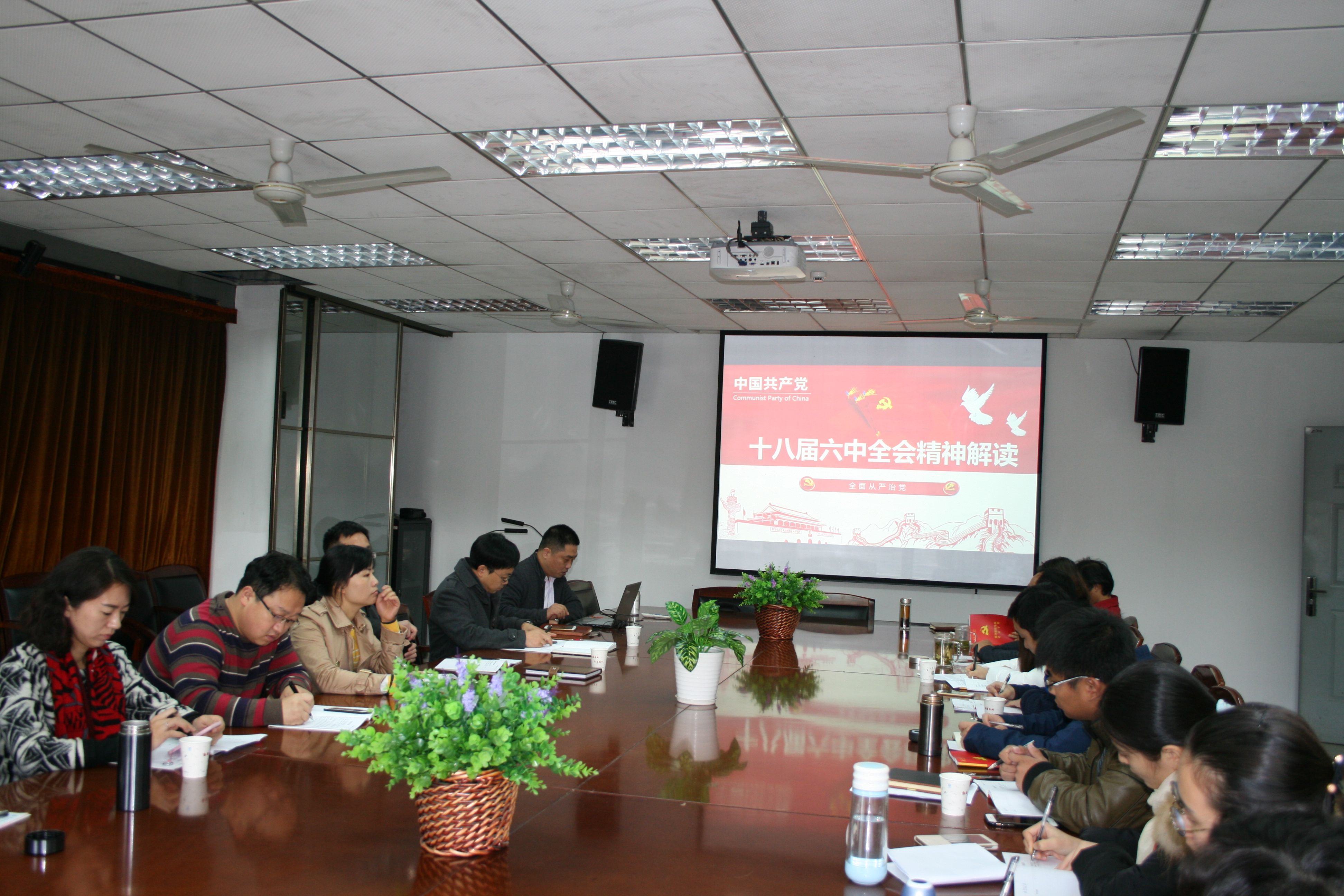 11月4日上午,365英国上市公司于人文楼附楼201会议室召开学院党委理论学习中心组扩大会议,会议分为两个阶段,第一阶段由学院党委书记张越上专题党课,集中学习传达十八届六中全会精神。第二阶段是传达学校《关于认真学习贯彻党的十八届六中全会精神的通知》,聚焦深入推进学院党委“两学一做”学习教育。