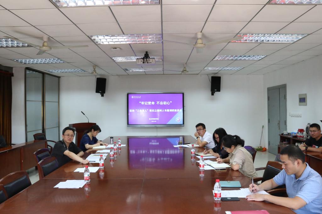 2019年9月29日下午,人文楼附楼A201会议室举行“坚持‘三全育人’ 落实立德树人”主题教育调研座谈会,陈国顺书记、刘三宝副书记以及各系主任参加会议,会议由于久霞副院长主持。本次座谈会是学院落实学校“不忘初心,牢记使命”主题教育工作方案的工作内容之一。