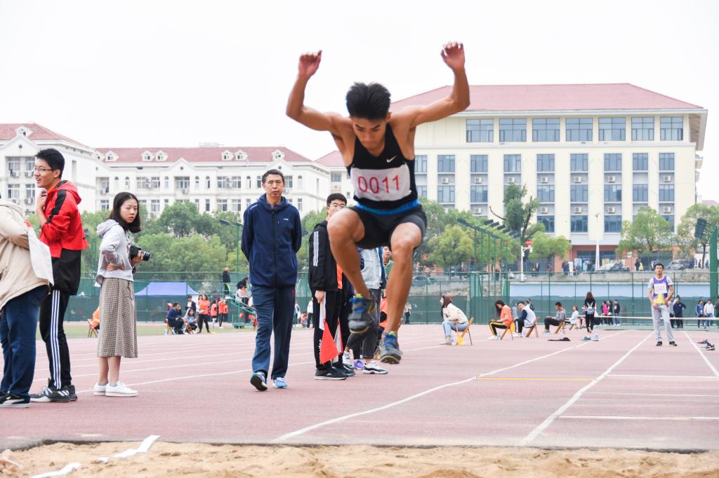 10月19日上午,第五十七届校运动会三级跳比赛正式开始。随着裁判一声令下,来自市场营销1601班的岳宁以13.61米再次为经管学院夺下首金。