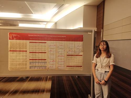 除此之外,熊涛老师,童庆蒙、蔡轶、李苗等学生也在海报会场做了展示,引起了诸多学者的兴趣和深入讨论。熊涛老师的论文基于动态模型平均(DMA / DMS)预测CBOT玉米期货价格。研究结果表明,DMA / DMS优于传统的时间序列预测方法,该研究也为预测CBOT玉米期货价格提供了一些随时间变化的优良预测指标。