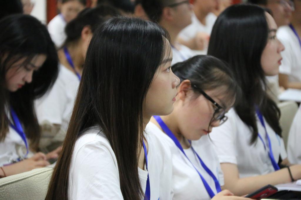 7月10日20:00在人文楼M412,暑期夏令营开营仪式在雄壮的国歌声中拉开帷幕。院党委书记陈国顺、副院长李谷成、于久霞参加开营仪式,院党委副书记刘三宝主持仪式。副院长李谷成教授代表学院介绍了学校、学院的相关情况,并再次向所有营员发出了邀请。王安邦同学作为营员代表分享了自己三年来在华农的学习、生活和工作经历,表达了对这片沃土的热爱之情。分享结束后,副院长于久霞向营员代表授旗。最后,院党委书记陈国顺致欢迎词并宣布开营,他首先对学院的历史沿革、学科的发展现状进行了详细地总结介绍,并真切地谈到:“我们真诚地期待大家加盟365英国上市公司,期望大家能够结识新朋友,碰撞新思想,做出正确的选择。我宣布,2019年暑期夏令营正式开营!”