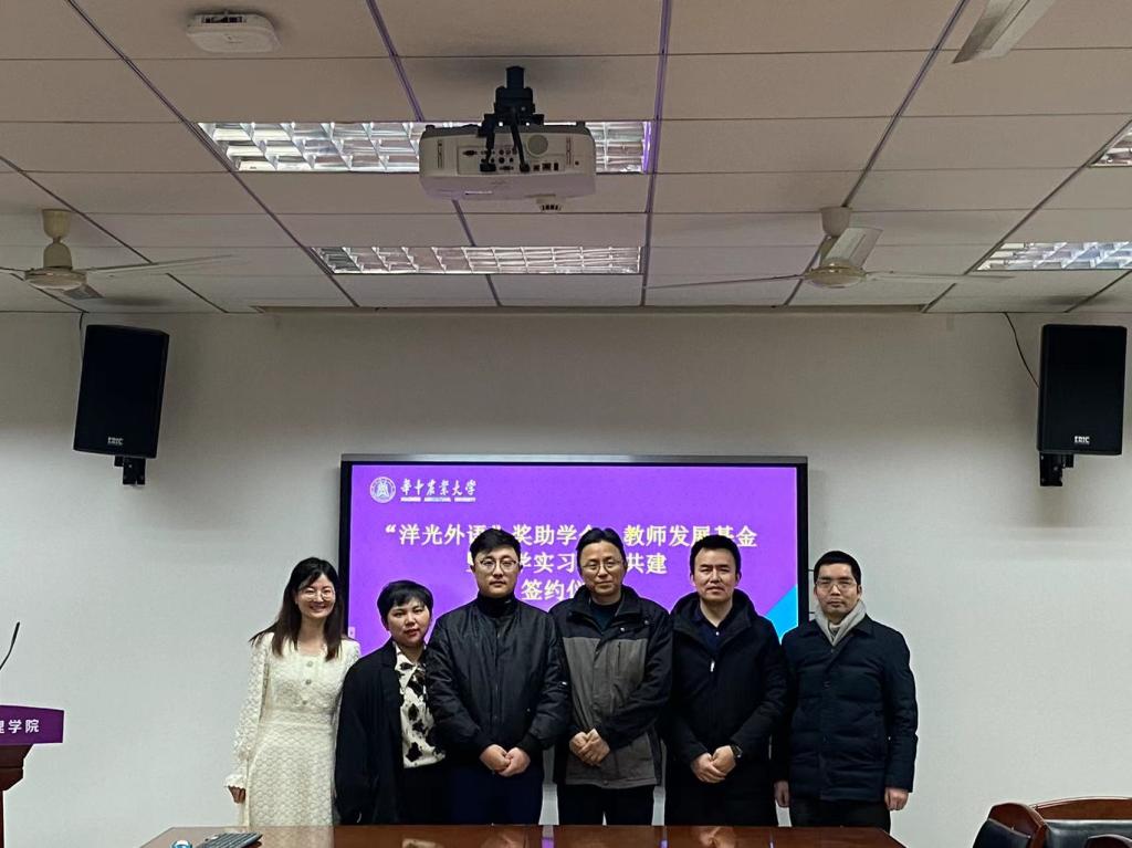 2月23日下午,“洋光外语”奖助学金暨教学实习基地共建签约仪式于人文楼A201举行。武汉洋光伟业语言培训学校校长杨靖、赵荣华,学院党委书记陈国顺、副院长罗小锋出席签约仪式。仪式由院党委副书记刘三宝主持。