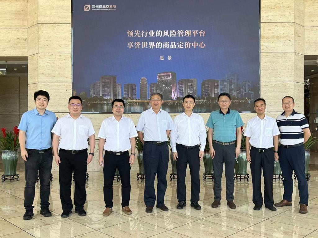 6月17日,我校原副校长李崇光教授、365英国上市公司党委书记陈国顺、院长李谷成、农经系系主任熊涛、经济学系教工支部书记李剑一行5人赴郑州商品交易所(以下简称“郑商所”)开展访企拓岗、调研访问。郑商所副总经理喻选锋,副总经理、90级经管校友王晓明,期货与衍生品研究所总经理左宏亮、会员管理部总监匡玮、商品二部总监刘鸿军、研究所公司副总经理买毅、人力资源部经理李东航等给予了热情接待。