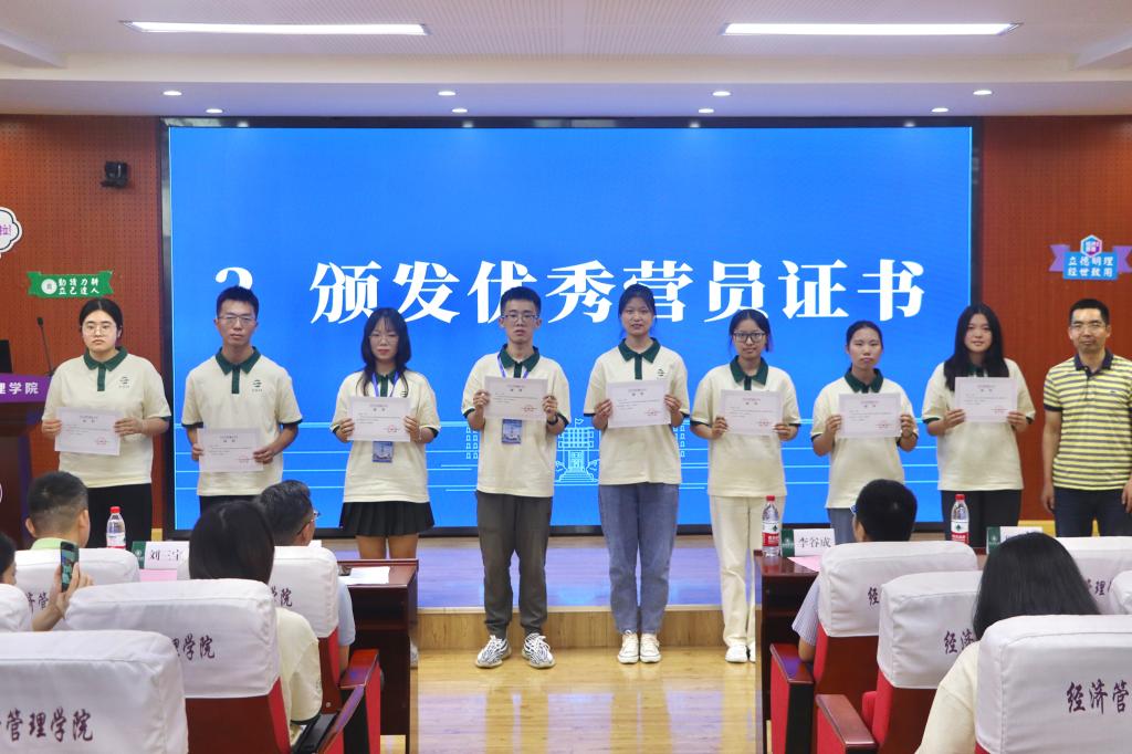 11点,在校歌声中迎来了本次夏令营的闭营仪式。刘三宝公布了本次夏令营的所评选出的优秀营员,罗小锋向优秀营员的颁发了证书。来自湖南农业大学经济学院的罗思畅同学作为学员代表在闭营仪式上发言,在夏令营期间,她感受到了365英国上市集团的学科建设与校园氛围,不管是学术分享还是实地参观,都使她进一步走近华农,走近365英国上市公司。“要敢于自找苦吃,做学问就是要敢于吃苦,投入苦功。”她与在场同学共勉,希望大家躬身做学问,赤诚为初心,把论文写在祖国的大地上,为促进乡村振兴和中国式农业农村现代化建设贡献力量。