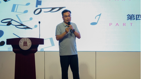 沈希飞带来了互动式党课《歌声中的党史党纪教育——新民主主义革命时期》,用歌声讲述党的历史,用旋律再现党的故事。结合一首首经典歌曲,他带领在场师生走过党的创建、国民革命、土地革命、抗日战争、解放战争的淬火道路。主题党课从《南湖的船,党的摇篮》吟唱党的诞生说起,再现了南湖游船里的中共一大情景。“革命军人个个要牢记,三大纪律八项注意”,结合当前党纪学习教育,沈希飞从《三大纪律八项注意》这一歌曲出发,通过讲述这首歌背后的历史故事,向在场党员生动地阐释了强化党的纪律建设的重要性。“1939年,一部《黄河大合唱》的大型合唱声乐套曲唱响了”,他提到,这套组曲展现了中华民族源远流长的光荣历史,表现了中国人民坚强不屈的斗争精神,广阔地展现了抗日战争的壮丽图景,向全中国全世界发出了民族解放的战斗警号。