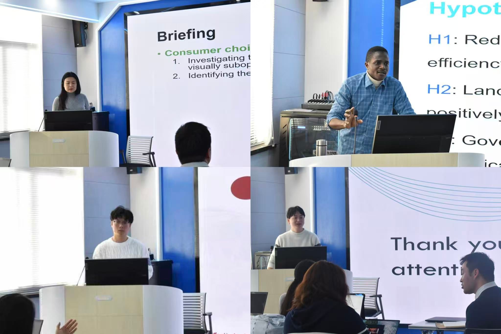 在主题汇报环节,中国农业大学张雪涓博士汇报了题为“Consumer Preferences for Ugly Produces”的研究,通过实地调查和数据分析,深入探讨消费者在面对外观不完美(Visually Suboptimal)农产品的购买行为、偏好动机以及潜在的市场影响。上海海洋大学青年教师N’SOUVI Kodjo汇报了题为“Economic and Environmental Benefit Analysis of Eco-Friendly Aquaculture Systems in China: Case of the Rice-Crayfish Co-Culture in Hubei and Hunan Provinces”的研究,聚焦稻虾养殖系统的经济和环境效益分析。上海海洋大学研究生白建立汇报了题为“An Exploration of the Relationship between Artificial Intelligence and Consumer Consumption Behavior”的研究,该研究聚焦于人工智能在消费场景中的应用如何影响消费者行为,发现消费者对AI的自主感知能抑制其不道德的消费行为。我校研究生周邓鹏汇报了题为“Employees’ Pro-Environmental Consumption Suggestions in the Catering Industry: Dimensions, Measurement, and Organizational Context Mechanisms”的研究,研究聚焦餐饮业员工面向顾客提出的“亲环境消费建言”行为,系统探讨了其维度构成、测量工具及组织情景影响机制。