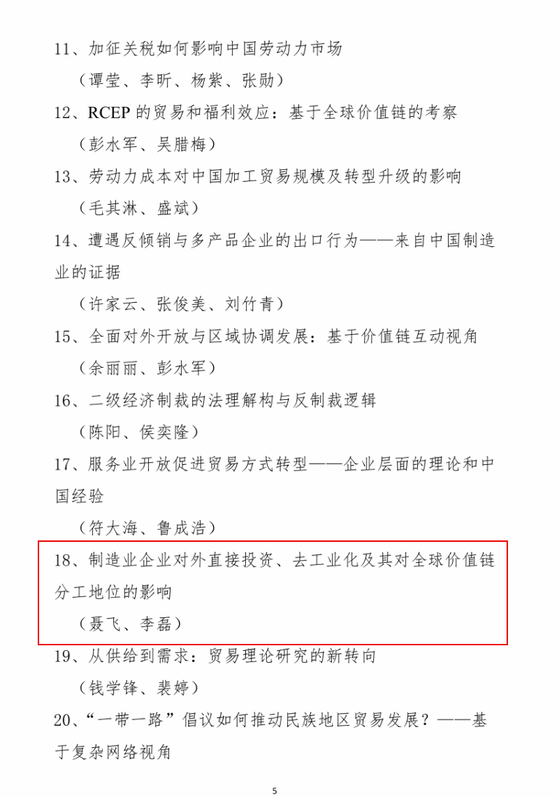 近日,商务部2022-2023年度商务发展研究成果奖评选结果揭晓,我院聂飞与合作者李磊申报的《制造业企业对外直接投资、去工业化及其对全球价值链分工地位的影响》获论文类优秀奖。