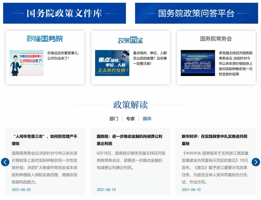 图2 国务院中国政府网政策频道首页推荐