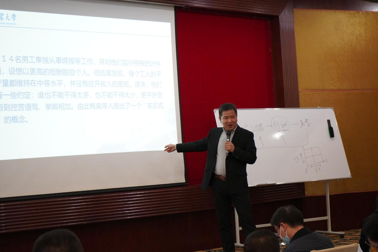 会上,于久霞副院长介绍了研修班开展情况。研修班讲授专家主要由我院市场营销、企业管理、会计学及农业经济管理教师团队组成,课堂内容充实形式多样。教授内容以MBA核心课程为主干,涉及市场营销、人力资源、财务管理、经济学等工商管理管理知识。于久霞提出,研修班的开展旨在通过学习研讨与管理实践让国有企业干部不断经营管理能力、政务服务能力,助力国有企业激发活力健康发展。同时,该课堂采用理论学习+企业案例研讨+管理实践的形式,师生共同研讨,也提升了我院教师的企业管理实践能力。