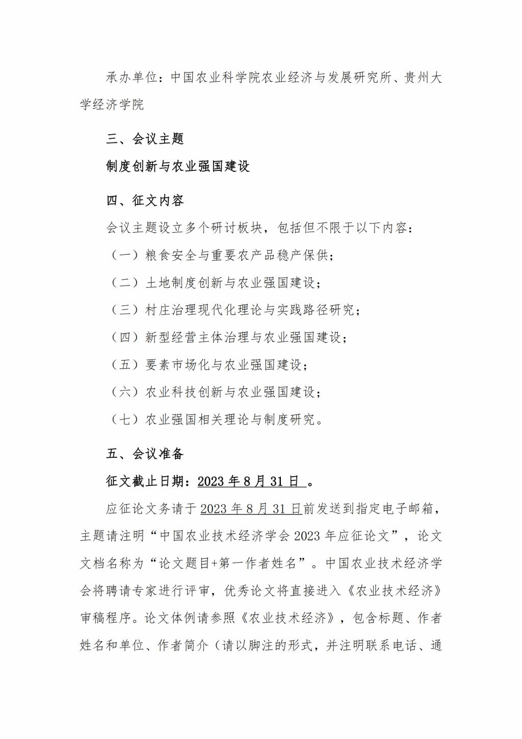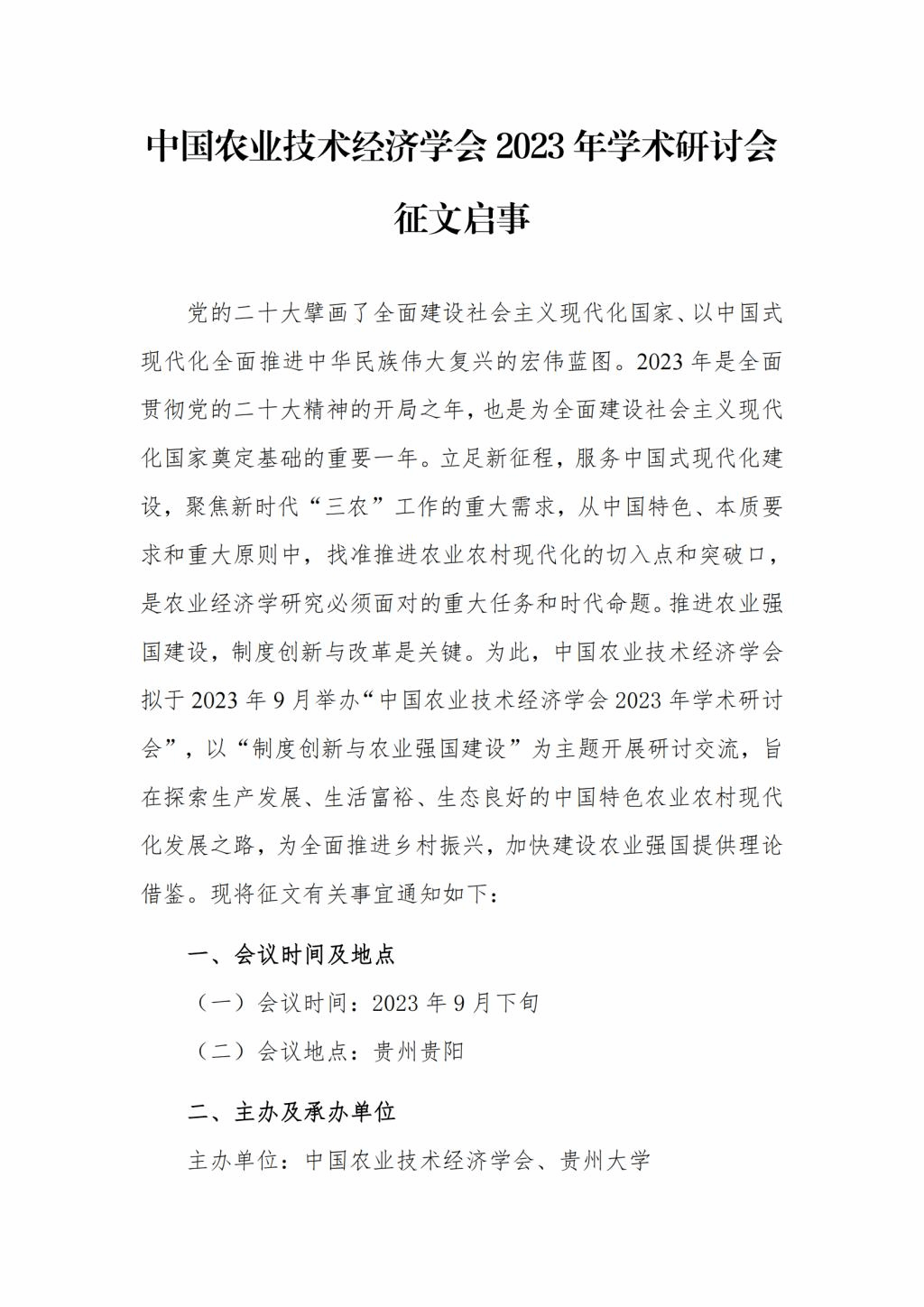邀请函|中国农业技术经济学会2023年学术研讨会征文启事