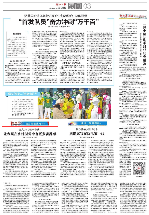核心提示: 1月18日,《湖北日报》刊发对省人大代表、我校严奉宪老师专访,讲述他让农民在乡村振兴中有更多获得感的故事。