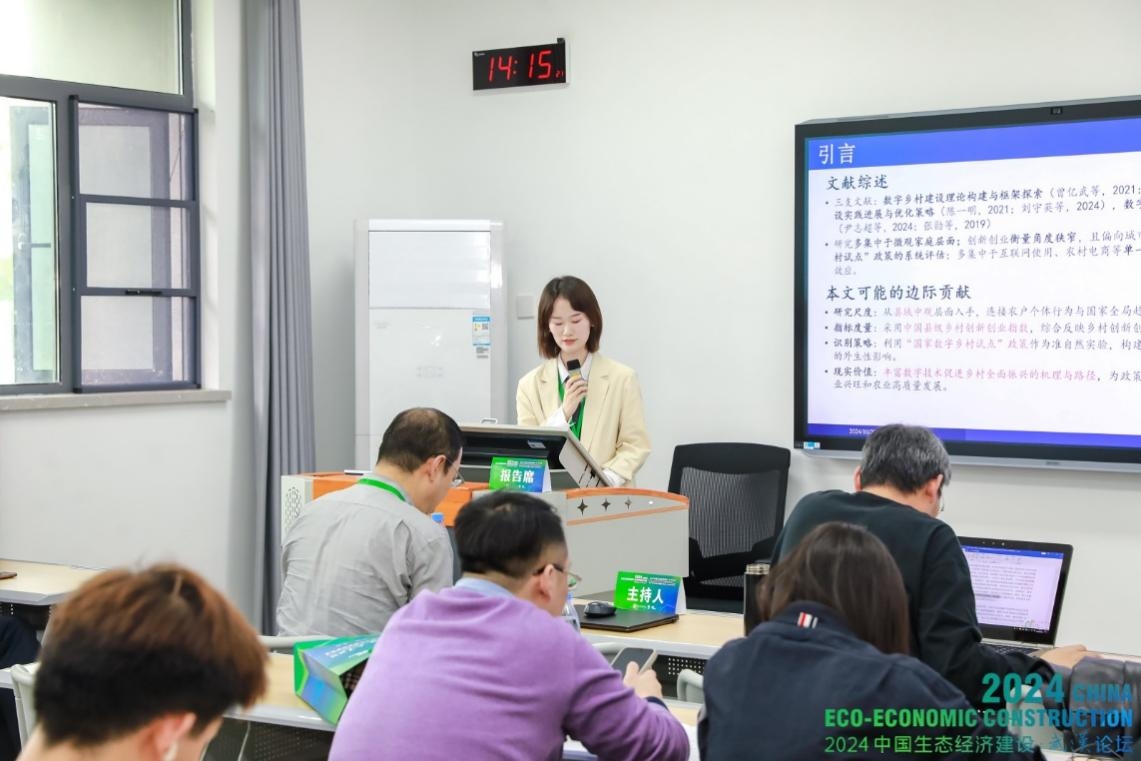 论坛期间,何可教授和颜廷武教授分别担任了平行论坛四“绿色发展与低碳转型”上下半场的主持人。李文静副教授在平行论坛六“数字经济与高质量发展”中做了题为“数字基础设施与农村劳动力非农就业质量”的学术报告。王璐瑶、朱润等5名博士研究生则围绕乡村产业融合发展、种养结合碳标准等主题,在各平行论坛进行了学术汇报。