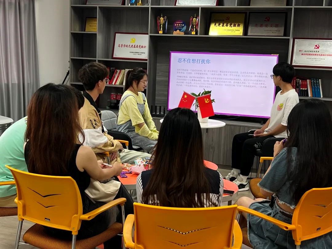书香润心灵,阅读伴成长。在学校读书节与心理健康节交汇之际,学院开展“逐阳”心理健康主题读书活动,由心理委员带领班级同学阅读《忍不住想打扰你》《被讨厌的勇气》《爱的艺术》等有关心理学、心理健康、生命意义以及爱的经典读物。“这是一本用痛苦写就,却能让人走出痛苦的书。”5月25日,在“逐阳”心理健康主题读书沙龙上,市营2102班关梓煜与同学们分享了自己阅读《活下去的理由》一书的感悟。她与大家探讨了正在青年群体中蔓延着的抑郁与焦虑风险,分享了书中个体在解决自身精神困境的全新视角,鼓励大家摆正心态,努力做一名能够传递光与温暖的人。