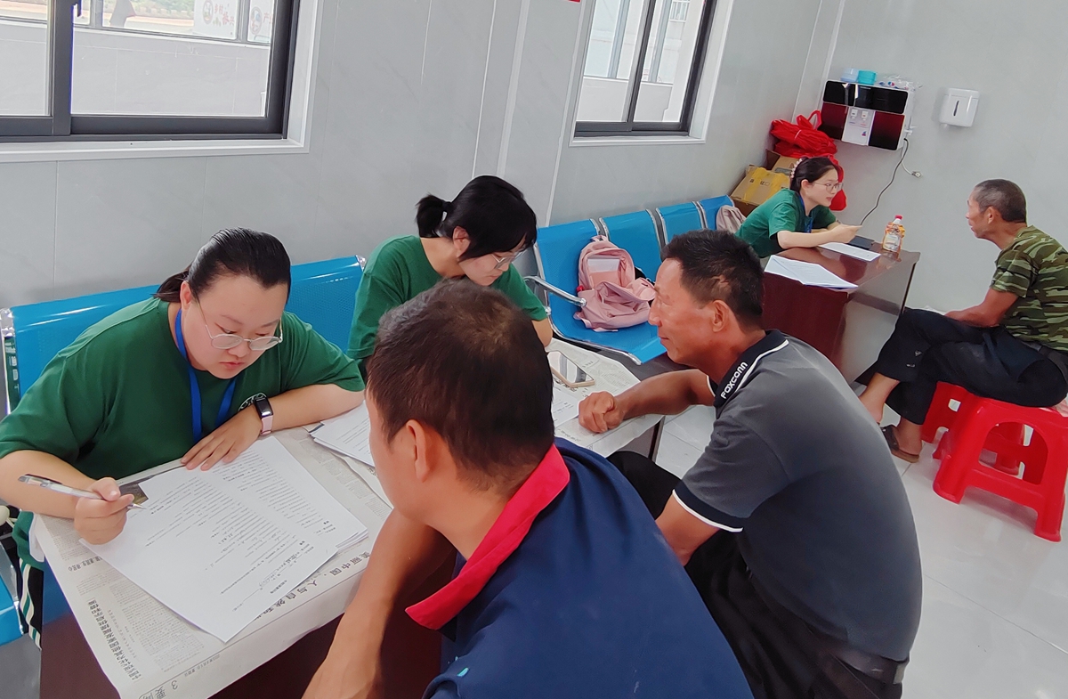 队员们进行问卷调查( 周典 摄)