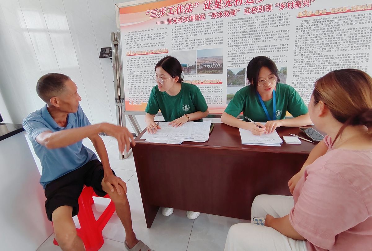 “大爷,您家种植黑米采用的是哪种种养模式呀?”“奶奶,您家去年作物有因灾害减产的吗?”……团队成员围绕新型种植技术、生产投入产出、农业保险补贴等问题,与农户一对一交流,深入了解水稻种养情况,感知农户作业状态,体会农业发展实况。