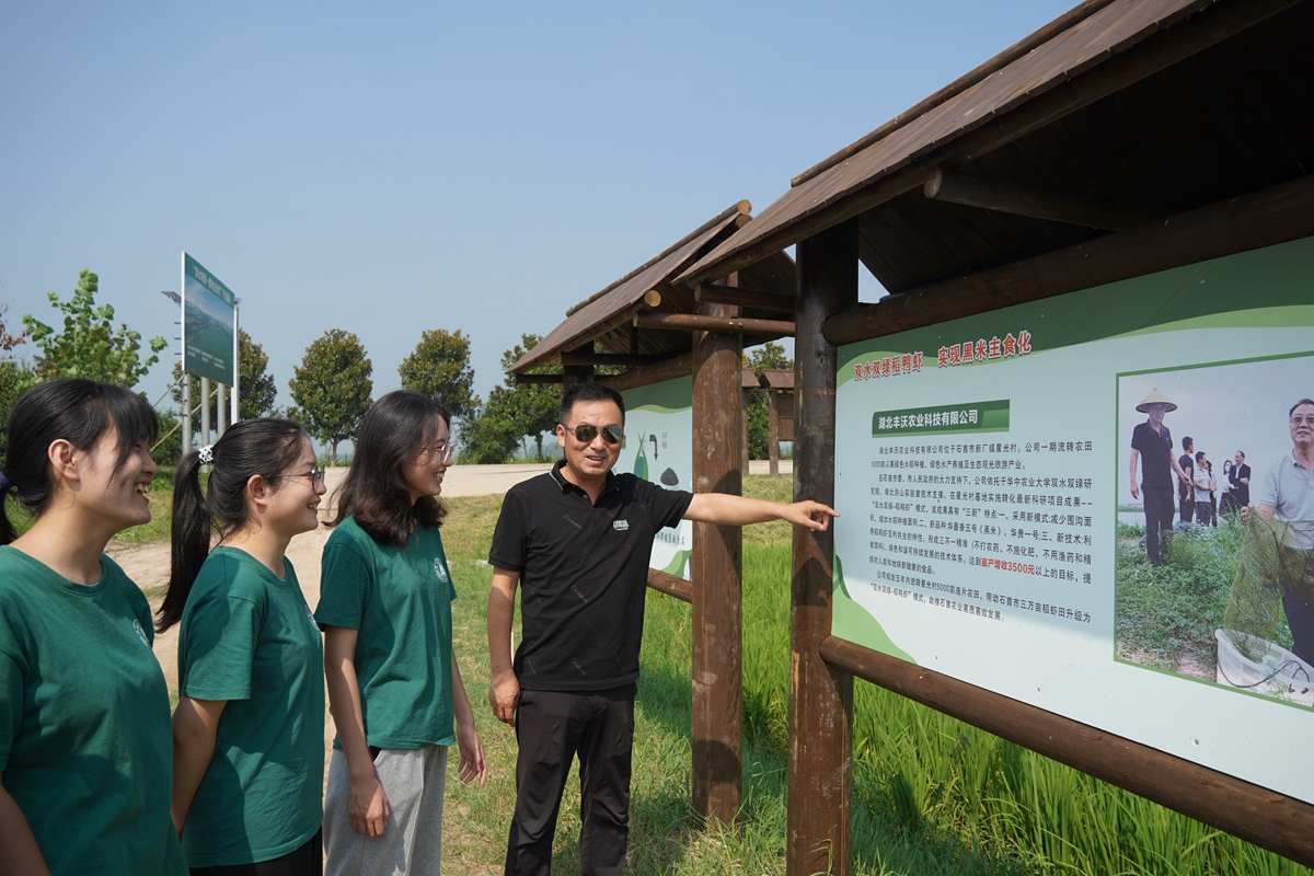 为充分发挥青年力量,团队和湖北双水双绿生物科技有限公司建立大学生社会实践基地,每年驻派大学生前往“双水双绿”基地调研,推动产学研深度融合,为大学生提供社会实践机会,更为乡村振兴注入新动力。