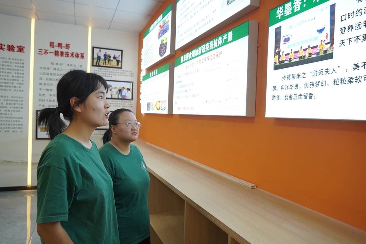 “黑米产量高,品质好,还不用打药,利润高。政府今年要求我们改种黑米,我们就听政府的话,跟着政府走。”星光村第9村小组的农户刘清明和调研员分享到。在谈及华墨香黑米的种养模式时,彭玉华奶奶认真地和团队成员谈道:“我采用的是种稻养虾的方式,和之前只种单稻相比,不仅增收翻倍,更是绿色方便。”“稻﹣鸭﹣虾”混合种植模式做到了资源节约、环境友好和生态平衡,将技术成果真真正正地造福于广大人民群众。