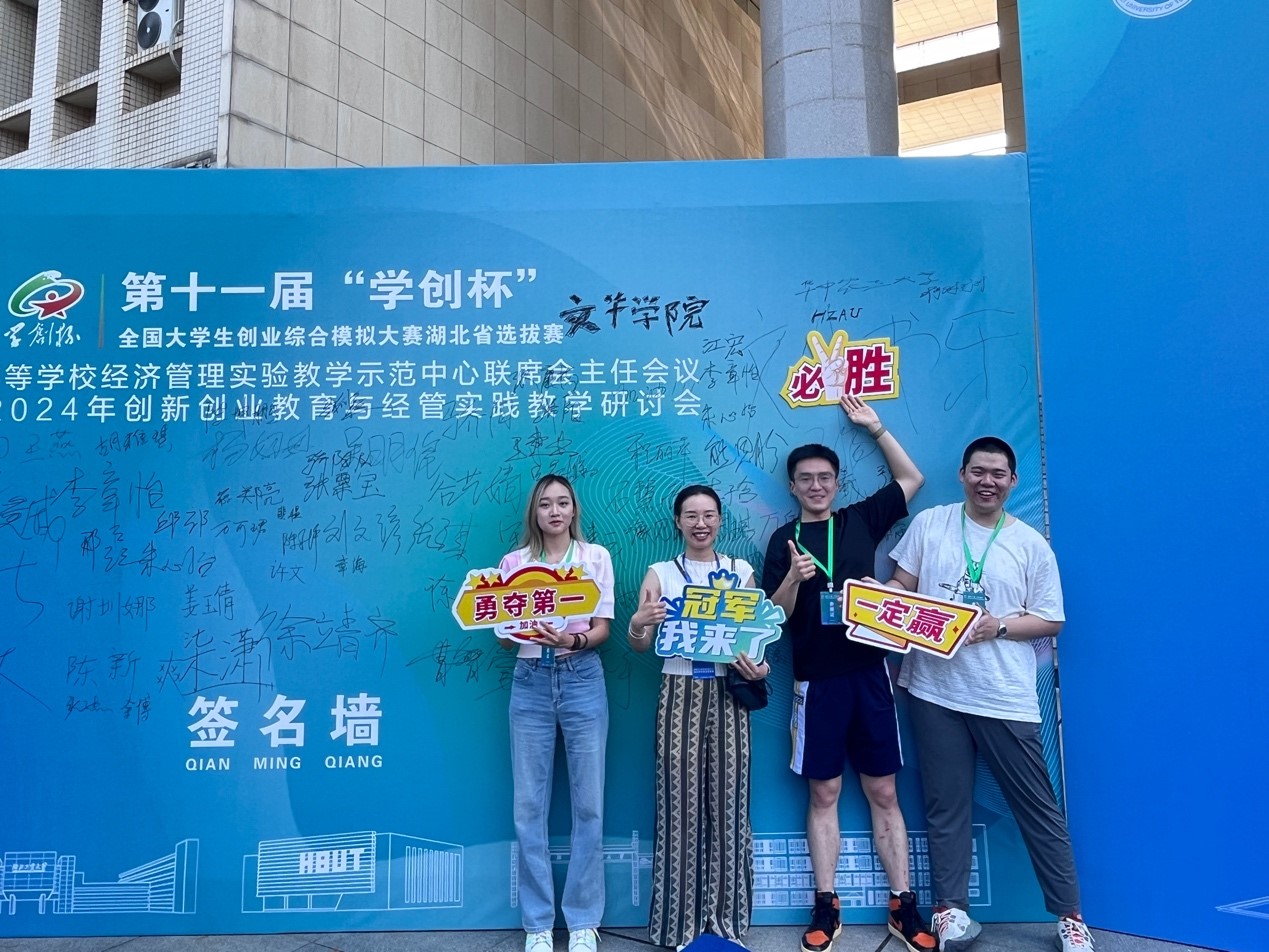 我院代表队与指导教师在湖北省决赛签名墙合影