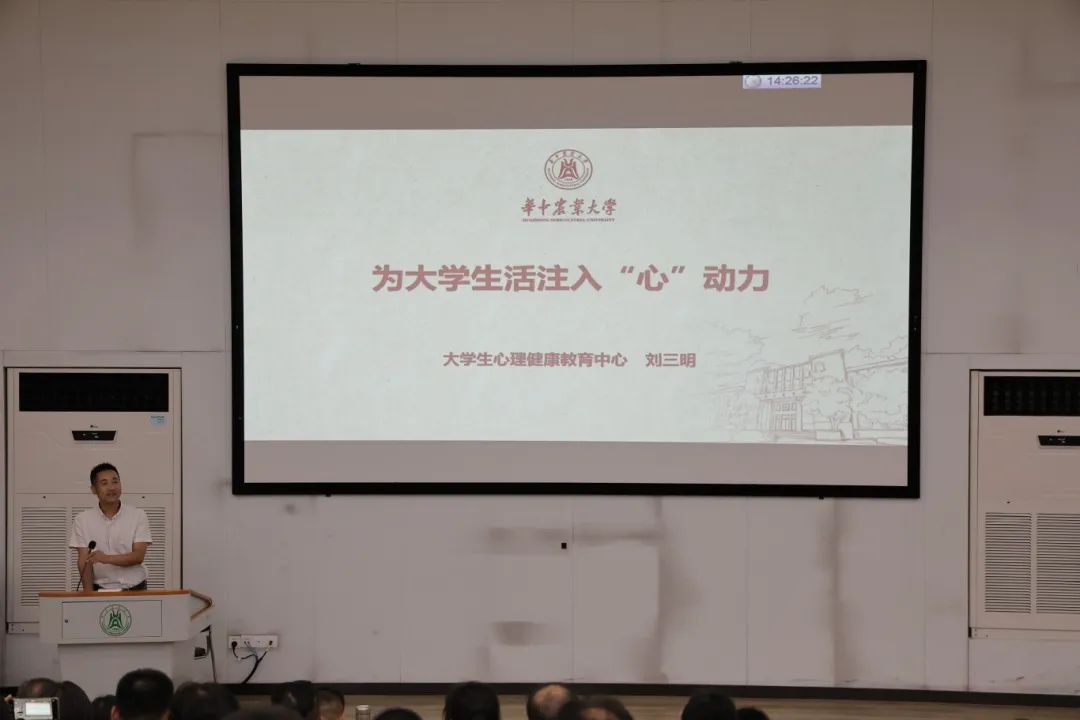 随后,刘三明老师带来了“为大学生活注入‘心’动力”主题分享,强调心理健康教育的重要性。“当孩子们初次离家,来到新的城市与环境展开独自生活,家长应多加关注他们的心理健康。”刘三明通过真实的数据向家长说明了大学生可能存在的心理问题及成因,并提供了应对心理问题的解决办法——更多支持、更多关心、更多合作、更快康复,希望家校合作共同为学生们营造一个温馨、包容、支持的心理成长环境。