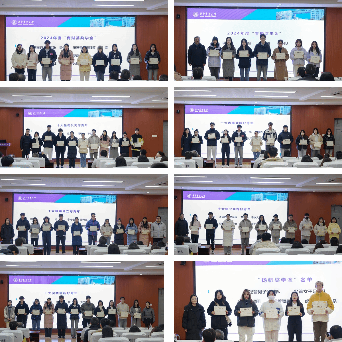 会上,2024年“大学生标兵”赵一凡,“春播奖学金”获奖代表徐善美,“育财荟奖学金”获奖代表张艺馨,“高顿奖学金”获奖代表、十大尚美健康好青年王艺飞,“梦里花园奖学金”获奖代表、十大学业先锋好青年王之学依次发言,分享他们在学业、科研、文艺体育、学生工作等方面的个人感悟和青春故事,畅谈青年使命担当,