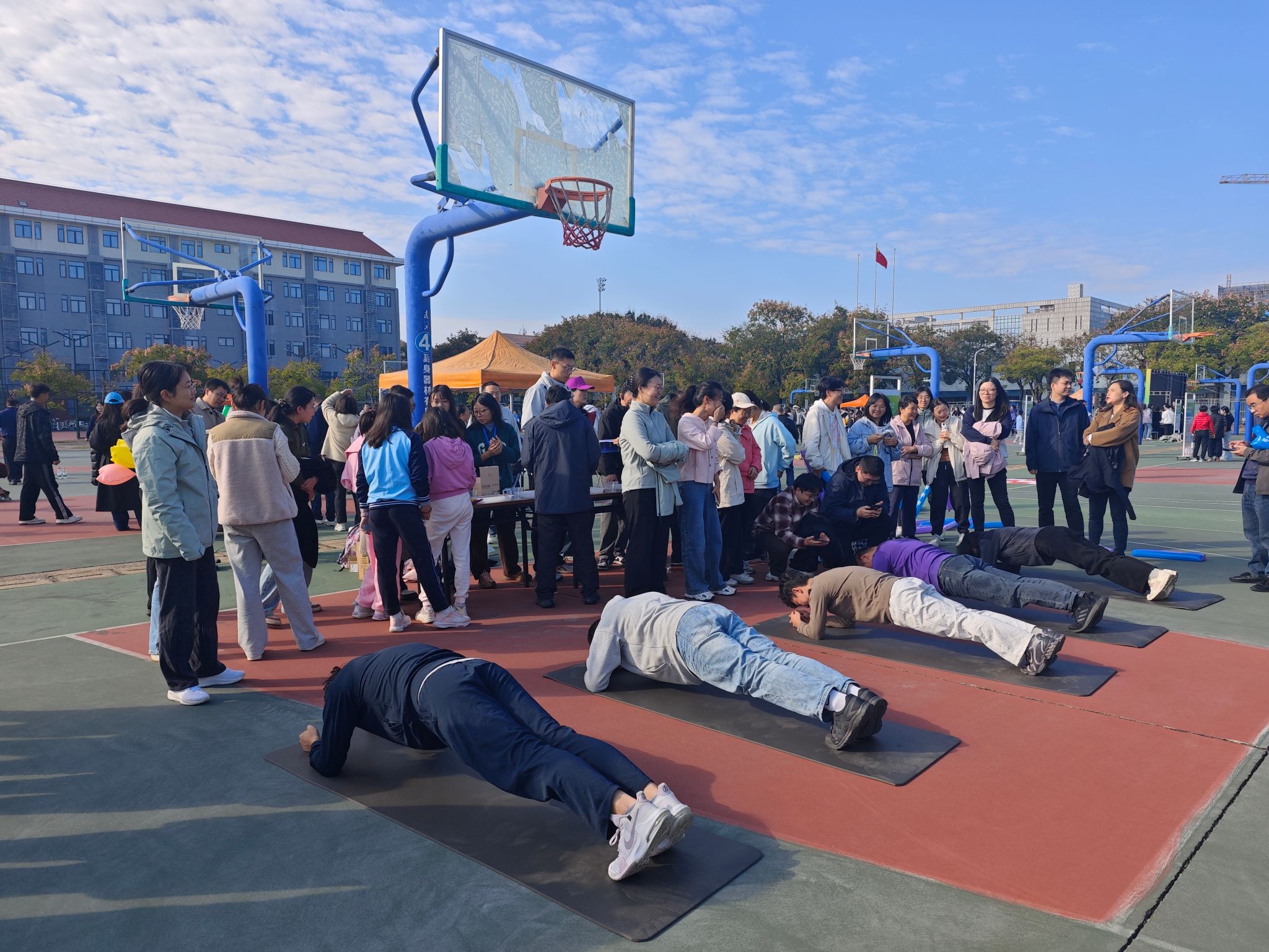 桂香漫狮山,活力满华农。我校第六十四届运动会赛事激战正酣,东运篮球场上的运动嘉年华,悄然掀起一阵“趣味运动”热潮。平板支撑、立定跳远投壶、仰卧投壶等项目花式登场,师生在秋日暖阳里挥洒汗水——当运动的激情与秋景的灵动碰撞,协作与欢笑声交织为一曲热闹的秋日运动乐章。