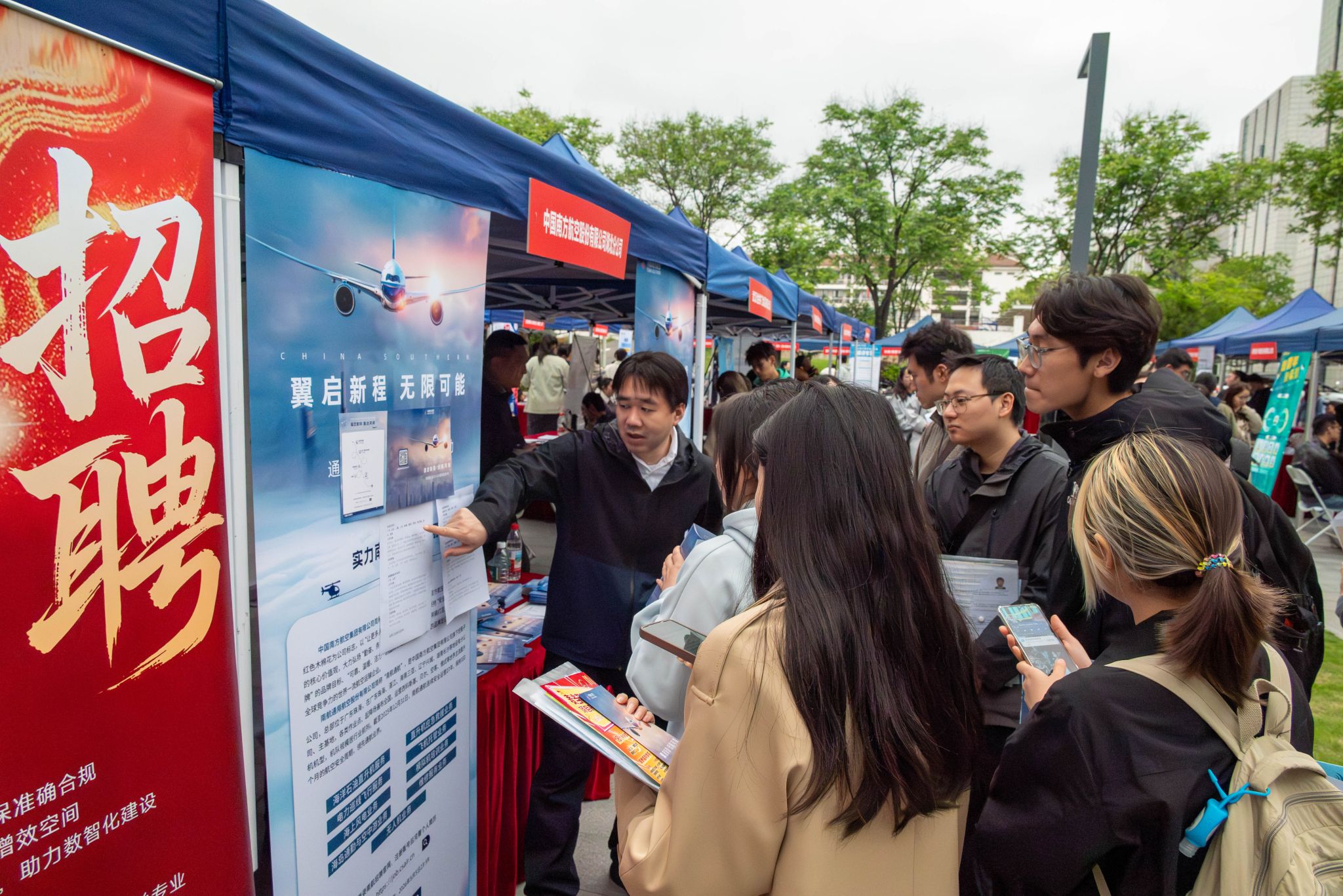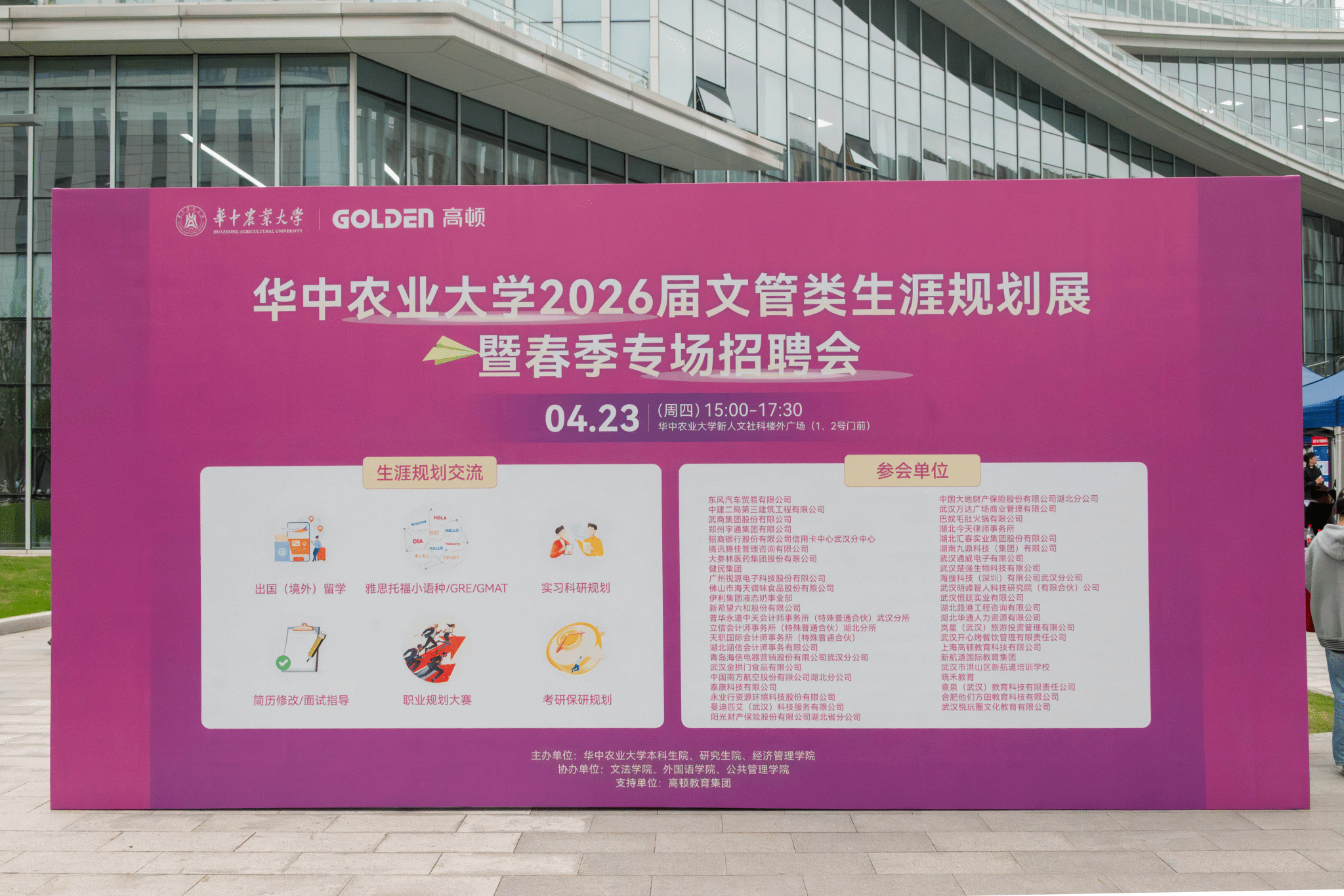 4月23日下午,我校2026届文管类生涯规划展暨春季专场招聘会在新人文社科楼外广场举行。本次活动由本科生院、研究生院、365英国上市公司联合主办,文法学院、外国语学院、公共管理学院协办,旨在为文管类学子搭建生涯发展与就业实践的综合平台。活动现场气氛热烈,吸引了四十余家企业、近千名学子参与。