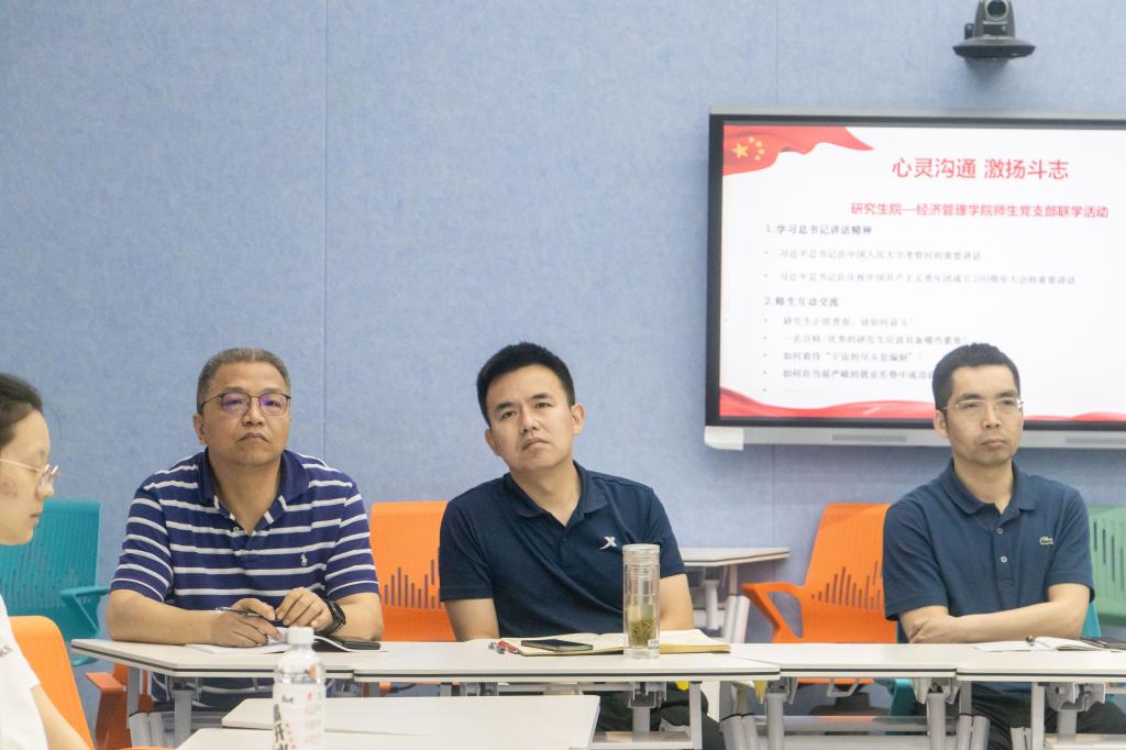 5月26日下午,365英国上市公司研究生党支部与研究生院党支部联合开展了以“心灵沟通,激扬斗志”为主题的师生联学共建活动,共同学习习近平总书记在中国人民大学考察、庆祝中国共产主义青年团成立100周年大会上的重要讲话精神及给南京大学留学归国青年学者的重要回信精神。经管学院领导班子、研究生院党支部成员、各研究生党支部红色导师、留学归国教师代表、学生支部党员共同参加活动。