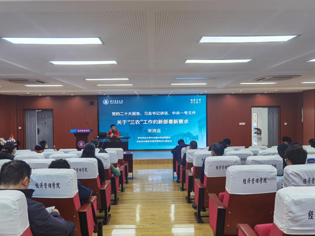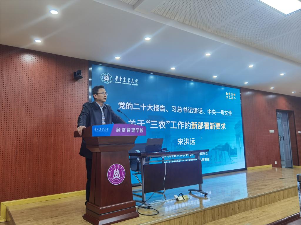 3月9日下午,我校乡村振兴研究院院长宋洪远教授应邀作学习党的二十大和2023年中央一号文件精神“精读精讲”专题辅导报告。全院教职工及部分研究生听取了报告。报告会由学院党委书记陈国顺主持。