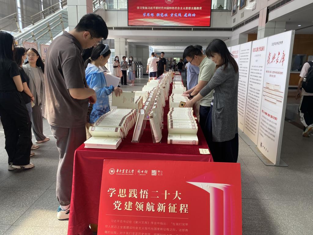 书展现场排列整齐的书籍,从马列主义经典著作到中国式现代化的最新思想成果,吸引前来参与学习的师生在展区前驻足翻阅,捧书轻读,感受“修史立典、存史启智、以文化人”的真正含义。