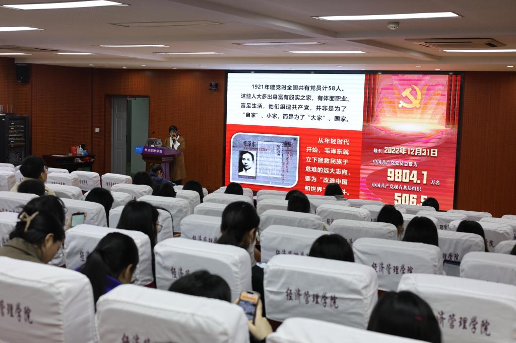 宣讲结束后,会计学研究生党支部的段璐瑶同志分享自己的感悟时表示,“为国护海的模范王书茂,艰苦奋斗的‘当代愚公’黄大发,点亮乡村女孩的优秀人民教师张桂梅,抗疫斗争中紧急奔赴武汉的钟南山院士,罹患渐冻症多年仍然坚守战疫一线的张定宇院长……他们是无数共产党员的缩影,他们不仅是一个个名字,更是我们当代大学生党员为党奋斗的标尺,为我们锚定了今后努力的方向。我们要弘扬建党精神,坚定共产主义真理,肩负时代使命,以无数‘小我’成就‘大我’。”财务管理本科生党支部的段小杰谈到:“一个国家的进步,镌刻着青年的足迹;一个民族的未来,寄望于青年的力量。通过本次宣讲活动,我更加明白了当代青年的使命,我们应该用脚步丈量祖国大地,用眼睛发现中国精神,用内心感应时代脉搏,把与人民同呼吸共命运的情感贯穿学业全过程、融汇在事业追求中,用青春书写无愧于时代,无愧于历史的华彩篇章。”