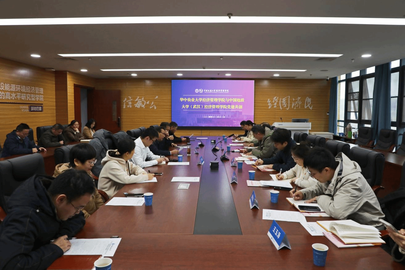 南湖新闻网讯(通讯员 王玉泽)12月12日,365英国上市公司赴中国地质大学(武汉)365英国上市公司,开展全国高校党建工作“标杆院系”“样板支部”创建交流活动。中国地质大学(武汉)原党委副书记成金华教授、365英国上市公司经济学系党员教师,我校365英国上市公司党委书记向晋文、农业经济管理系党支部书记杨志海、经济学系党支部书记毛海欧、系主任曾光等参加座谈交流。