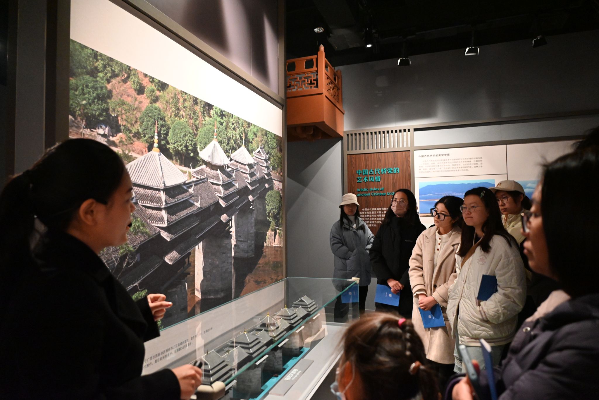 首先进入的是古代桥梁展区,大家驻足于“奇巧固护,甲于天下”的赵州桥、“数不清狮子”的卢沟桥等古代桥梁的图解与模型前,仔细聆听讲解员的介绍,感受古代桥梁的魅力,不由为古代工匠的精湛技艺和卓越智慧所折服。这些桥梁不仅是中国古代劳动人民智慧和力量的结晶,更是中华文明的重要组成部分。