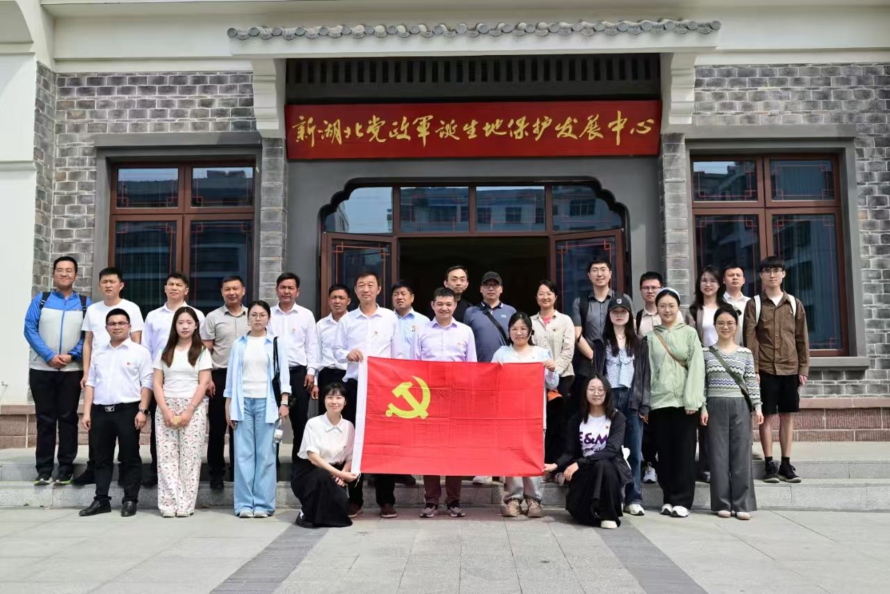 活动首站走进中共湖北省委、省人民政府、湖北军区诞生地——孙家畈红色教育基地。在旧址前,党员们面对党旗庄严宣誓,重温入党誓词;随后,师生党员走进革命历史陈列馆,回顾湖北解放的光辉历程,深刻感悟“艰苦奋斗、团结务实”的红色精神。活动中,党员们结合中央八项规定精神学习,现场交流心得体会,一致表示要继承和发扬党的优良传统,以更加过硬的作风投身乡村振兴实践,切实把习近平总书记关于加强党的作风建设的重要论述转化为服务“三农”、助力农业农村现代化的实际行动。