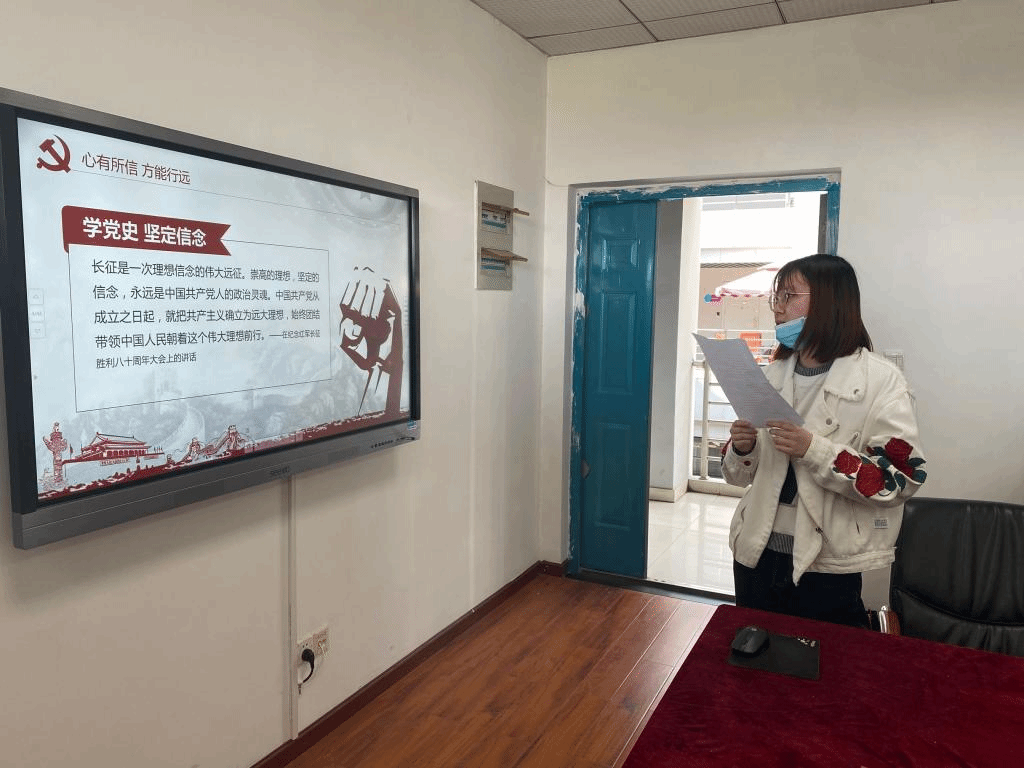 会议的第二项重要议程是学生党员代表彭逸然和鲁玥的党史学习心得分享。彭逸然同学分别从“心有所信 方能行远”、“人民的英雄”、“英雄的人民”、“听党话 跟党走”四个专题,讲述了他们在党史学习中坚定理想信念、铭记英雄事迹、革命英雄主义以及如何全心全意为人民服务的思想感悟。鲁玥同学重点就她对延安精神、红船精神和井冈山精神的学习体会做了分享。她说通过党史学习,进一步坚定了政治信仰,并对全心全意为人民服务的宗旨有了更深的理解。