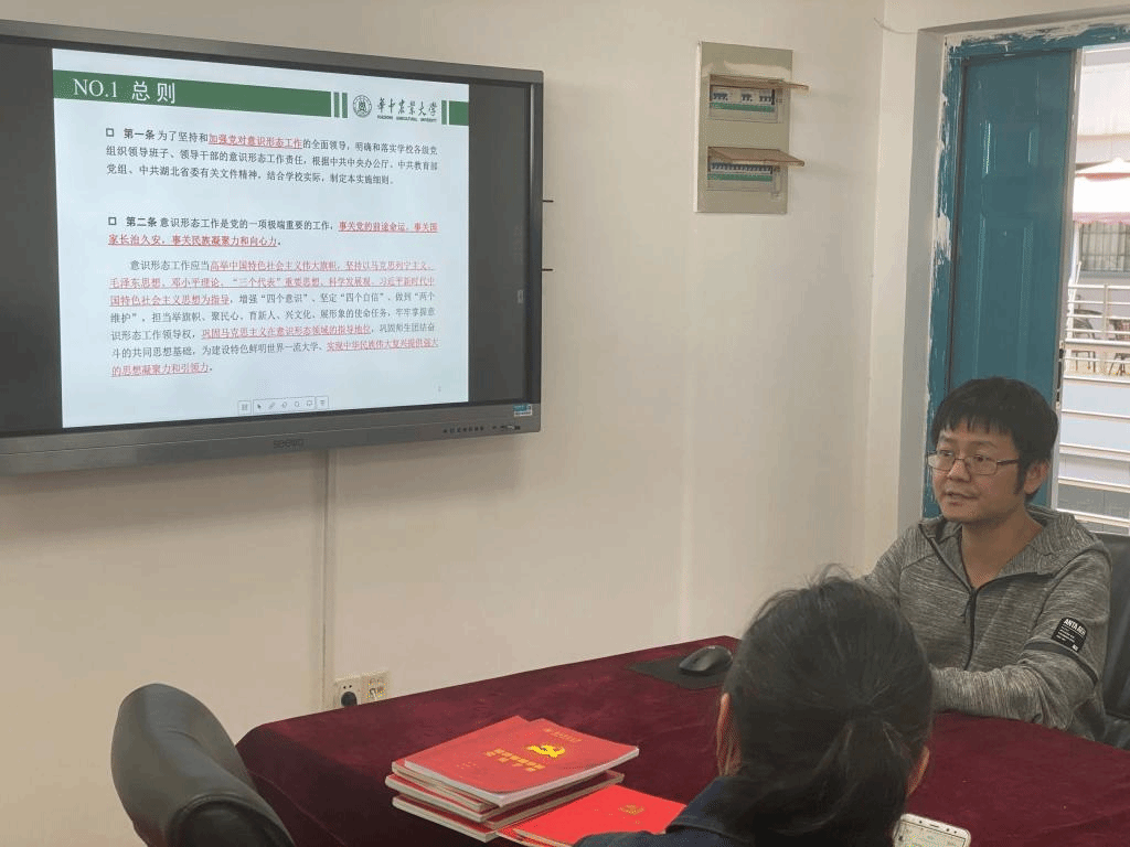 随后,涂涛涛老师就《中共365英国上市集团委员会意识形态工作责任制实施细则》文件精神进行传达。他首先强调了意识形态工作的重要性,并重点对各级党组织主要承担意识形态工作的责任内容进行了说明,包括:坚持和完善坚定维护党中央权威和集中统一领导;坚持马克思主义在意识形态领域指导地位,把坚持以马克思主义为指导全面落实到思想理论建设、哲学社会科学研究、教育教学各方面;定期分析研判意识形态领域情况;加强阵地管理;建立健全课堂教育教学和教材使用管理办法体系,落实领导干部听课制度;掌握网络主导权;加强思想政治工作;坚持“五育并举”,深化“三全育人”,做到“人人事事时时处处皆育人”;做好对党外知识分子的团结引导服务工作;领导与组织处置重大问题;加强队伍建设意识形态领域其他相关工作等等。