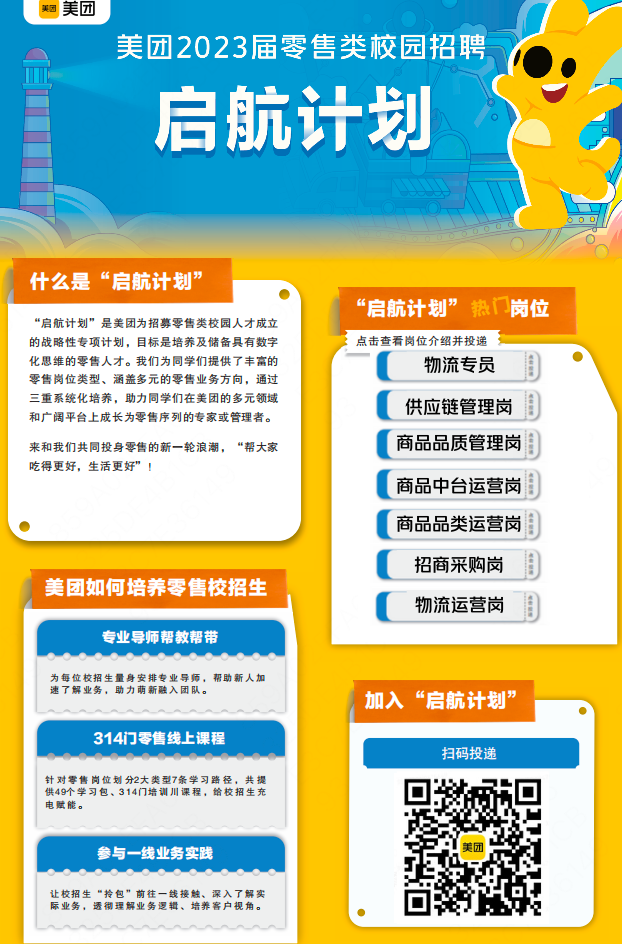 “启航计划”是美团零售类校园人才战略性专项计划,目标是培养具有数字化思维的零售人才。