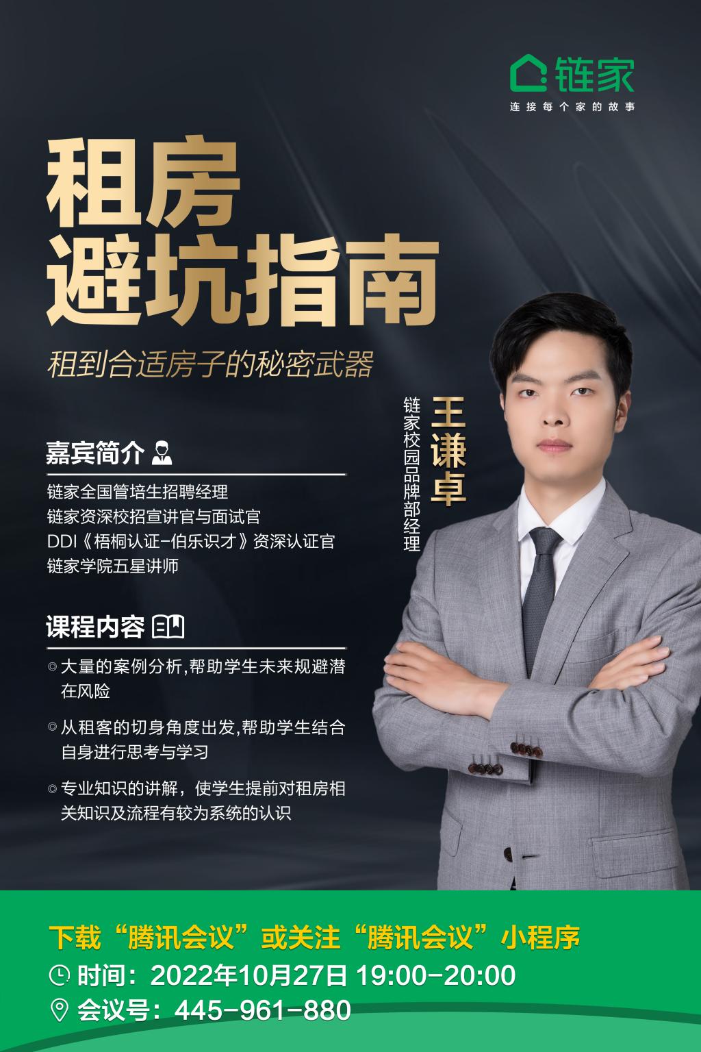 为提升同学们在职场中的适应能力,学院特邀链家集团资深品牌经理讲解找房租房中的注意事项。请有意向参与的同学提前微信扫码报名: